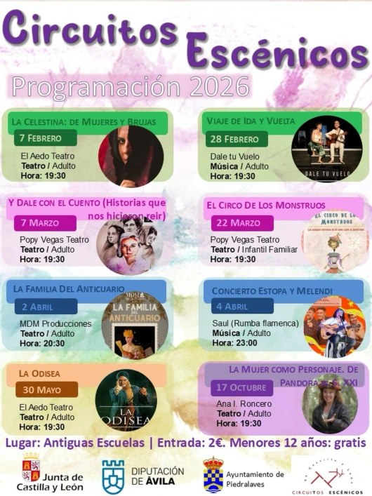 El 7 de febrero comienza una nueva temporada de Circuitos Escénicos, un programa cultural cuyo objetivo es acercar el teatro y la música a municipios como el nuestro, facilitando el acceso a espectáculos de calidad sin salir de Piedralaves.